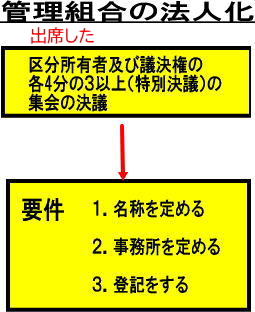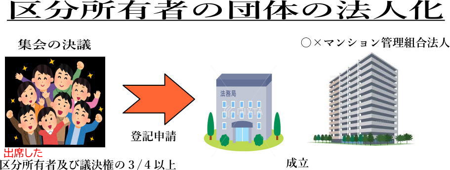★かつ、登記をすることによって法人となる...集会の決議だけでは、内部だけの話で、公の法人になれない。法人としての登記が必要。