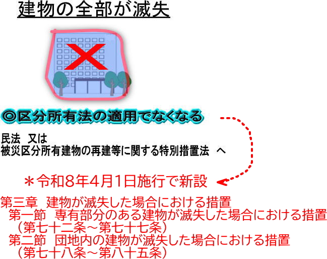 一 建物(一部共用部分を共用すべき区分所有者で構成する管理組合法人にあつては、その共用部分)の全部の滅失